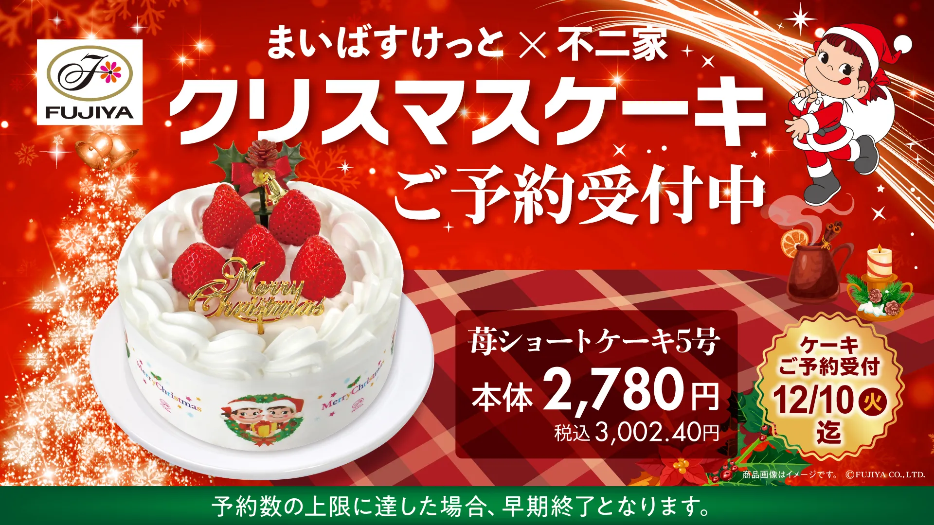 まいばすけっと株式会社(本部:神奈川県川崎市、代表取締役社長:岩下欽哉)は、2024年12月10日(火)まで「クリスマスケーキ」の店頭予約を受け付けております。 楽しい食生活を彩る「おいしさ」、「新鮮」、「健康」をご提供するため、まいばすけっとでは今後も様々な商品をご提案してまいります。