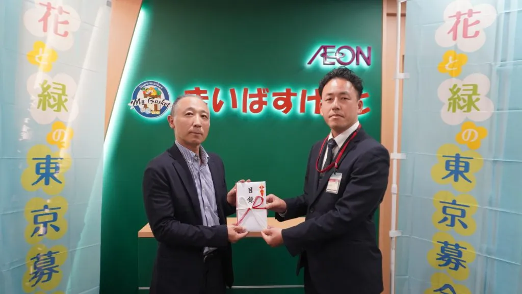 まいばすけっと株式会社(本部:神奈川県川崎市、代表取締役社長:岩下欽哉)は、昨年に引き続き、店舗で販売したレジ袋の収益金の一部を、東京都「花と緑の東京募金」へ寄付いたしました。 寄付金は海上公園等における花壇の整備や植栽など「花と緑」によって空間を彩り、まちを訪れる人をおもてなしする事業にご活用いただきます。 寄付金を活用した事業の詳細についてはこちらからご覧ください。