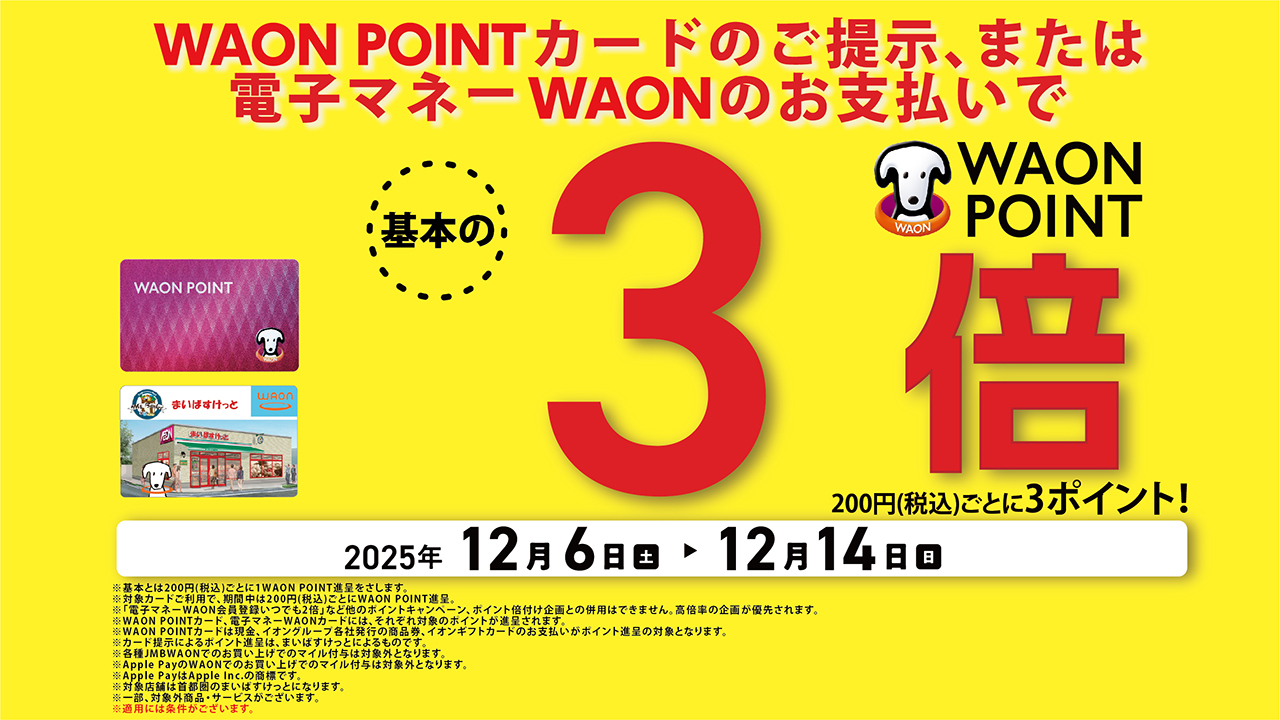 ※各種JMBWAONでのお買い上げでのマイル付与は対象外となります。