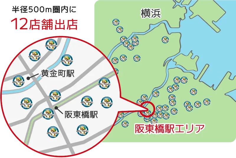 小商圏の中で店舗数を増やし、効率的かつ安定した運営を行います。