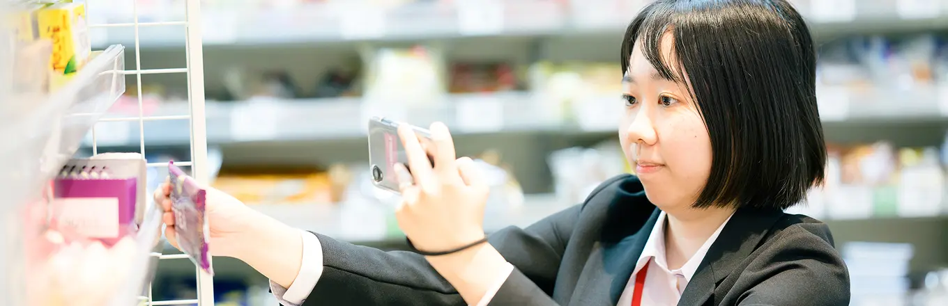 入社3年目に営業企画部のバックオフィスチームに異動し、店舗運営や店舗の課題解決のための様々な業務を担当するようになりました。現在は、オールセルフレジ店舗のあり方についての検討や提案の主担当として、実験店舗での調査や試算、仕組みづくりなどに取り組んでいます。アルバイト時代や入社直後は、会社が整えた仕組みやマニュアルに助けられましたが、今度は私がそれをつくり、効率的な店舗運営を推進して店舗や会社の成果を高めたいと思っています。